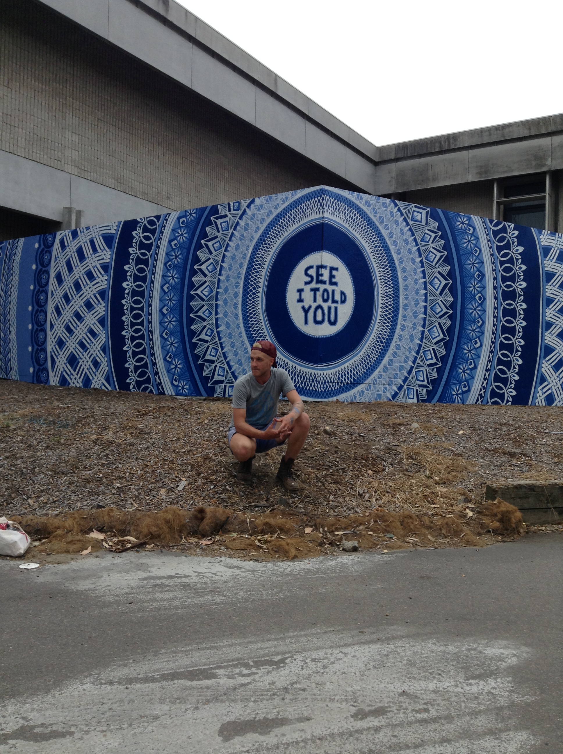 I have spent the past two days working with my son on a mural on the outside of the Newcastle Art Gallery.